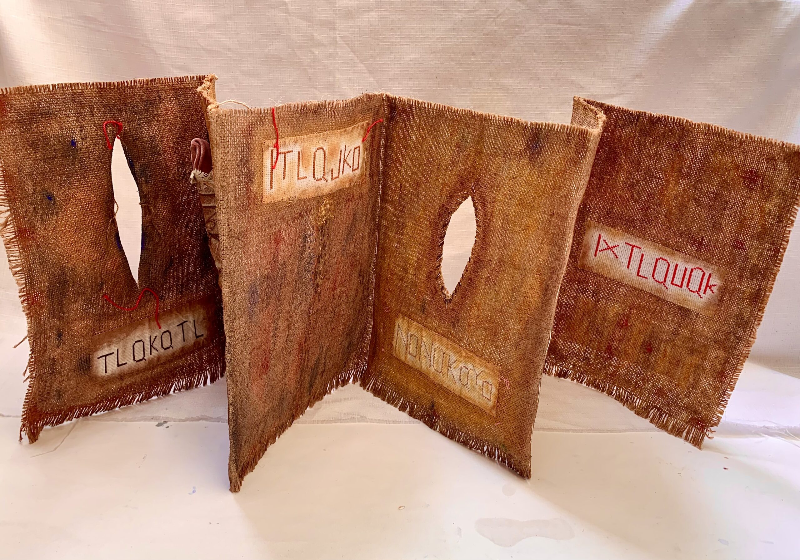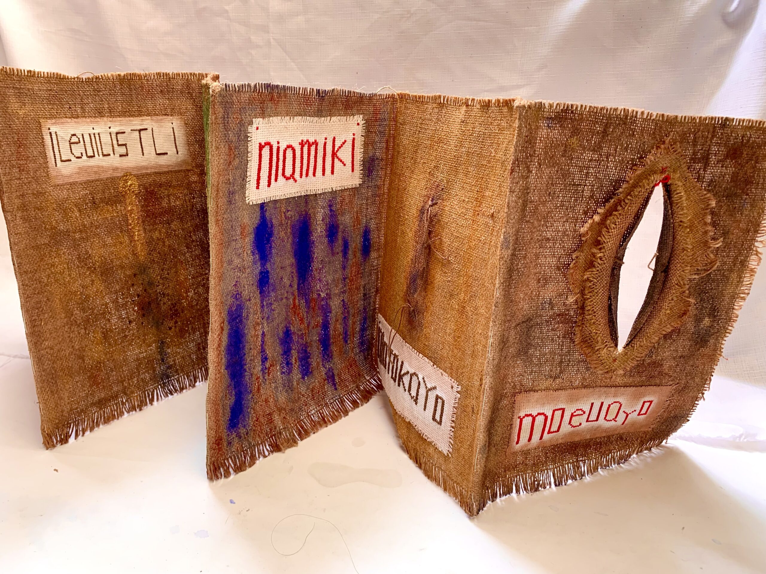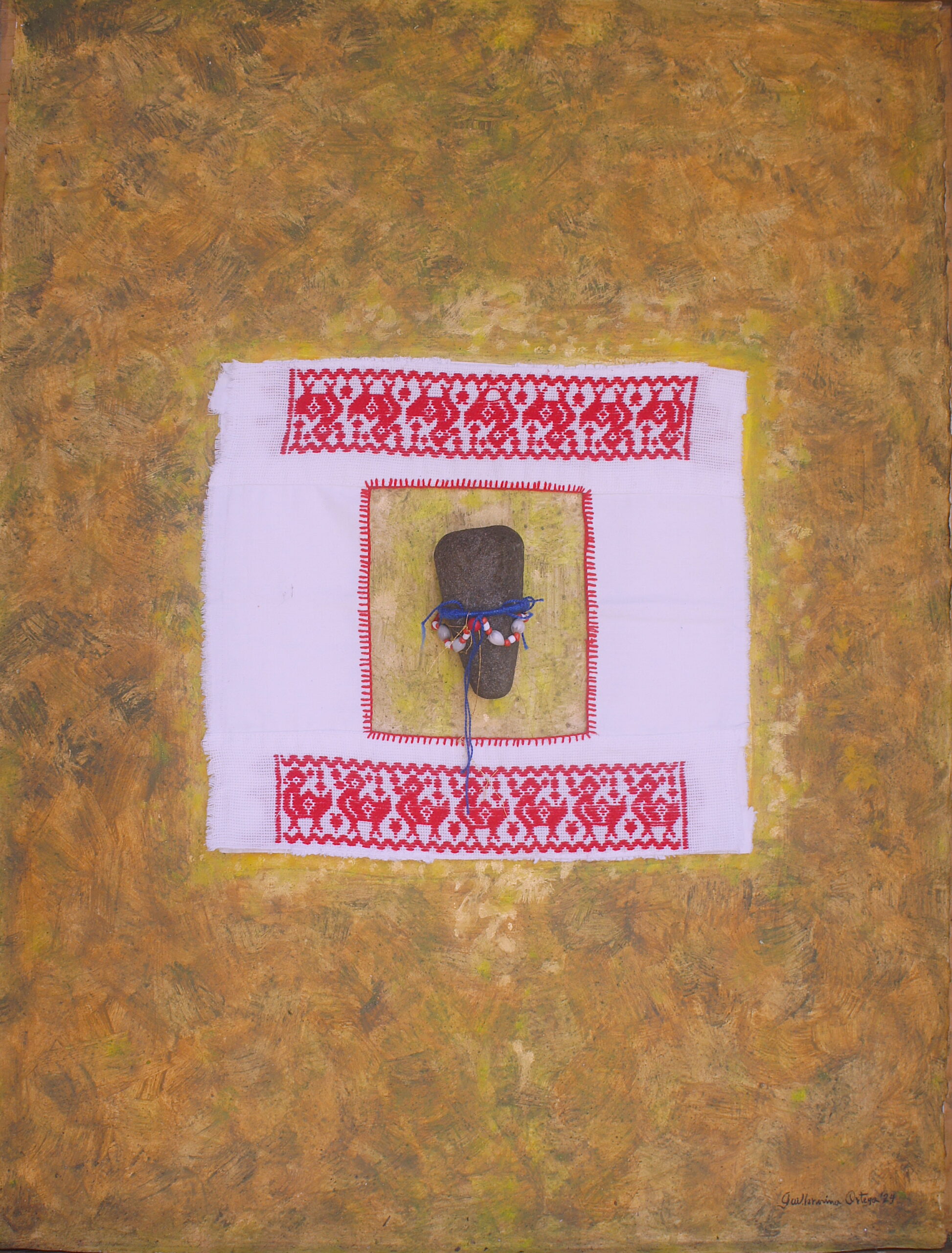 En estos gestos Guillermina Ortega también se apropia de la agencia que nos corresponde como ancestras de nuestro propio tiempo, la responsabilidad de reconectar con las diferentes lenguas que nos habitan, los textiles que tocan nuestros cuerpos, pero sobretodo con las prácticas que resguarda la memoria colectiva.