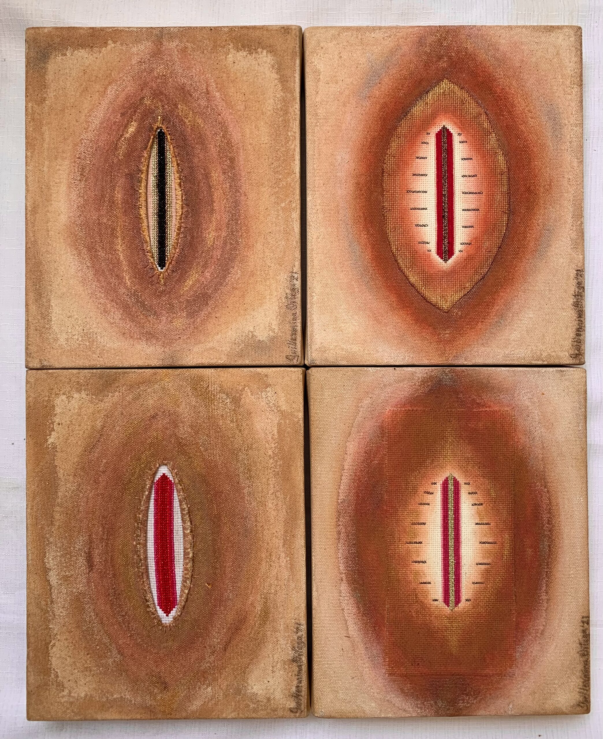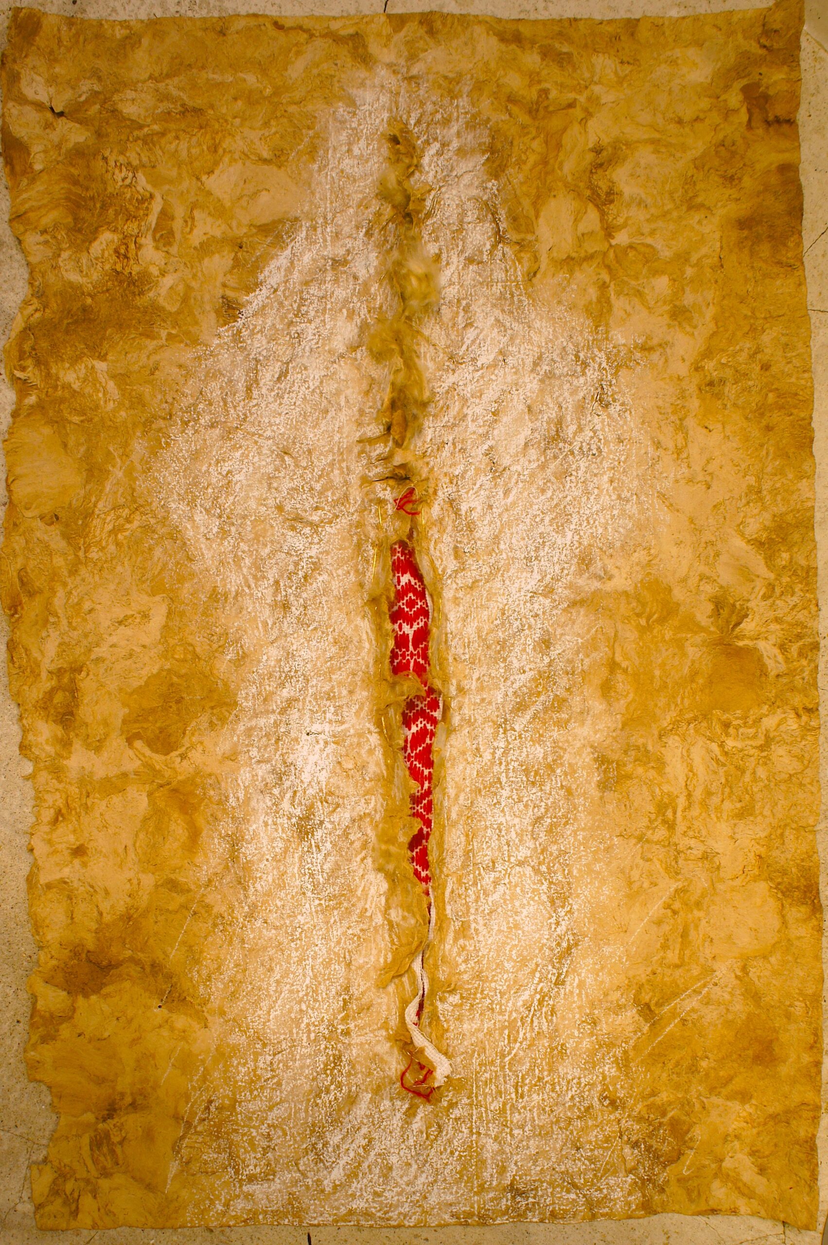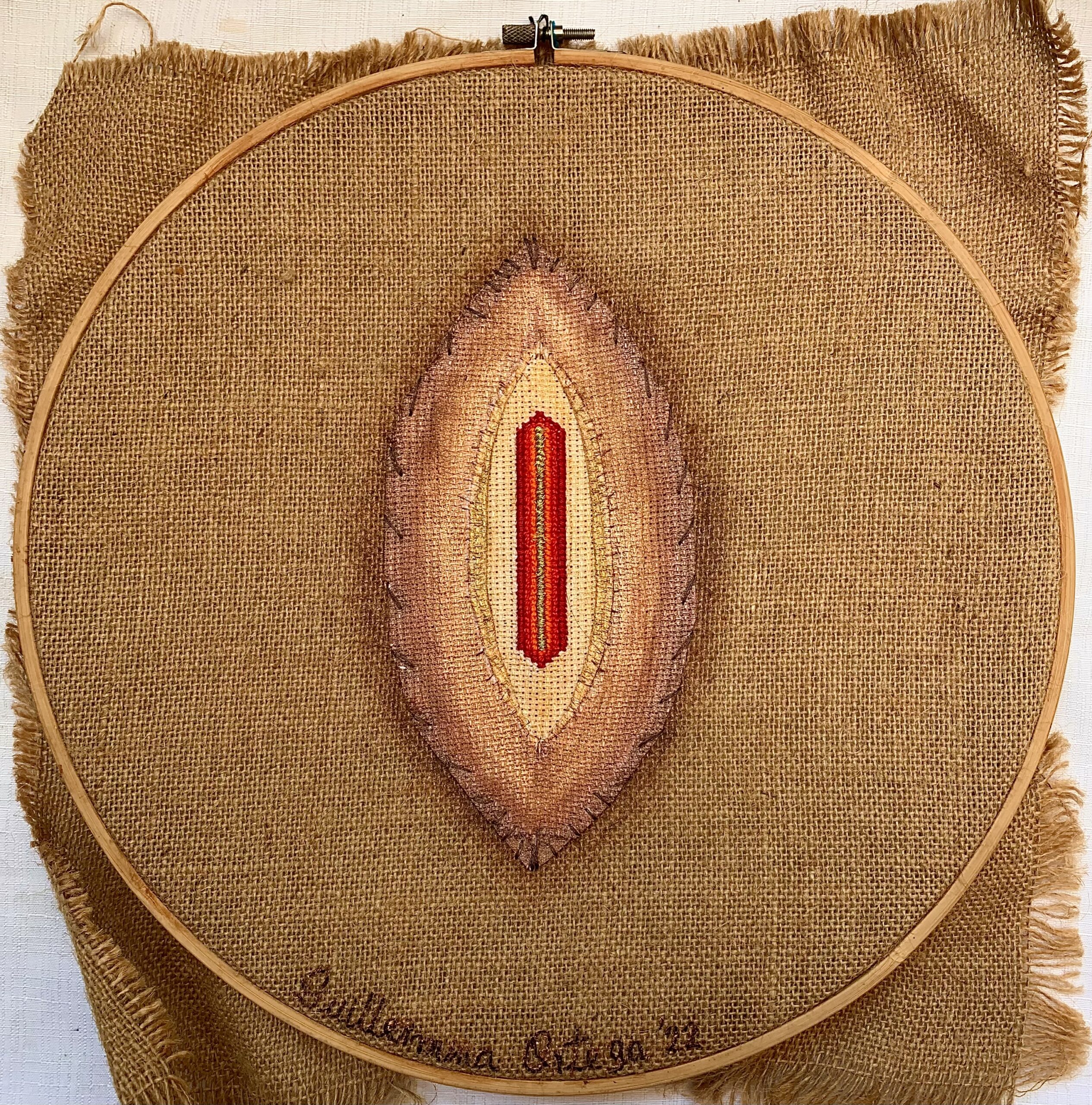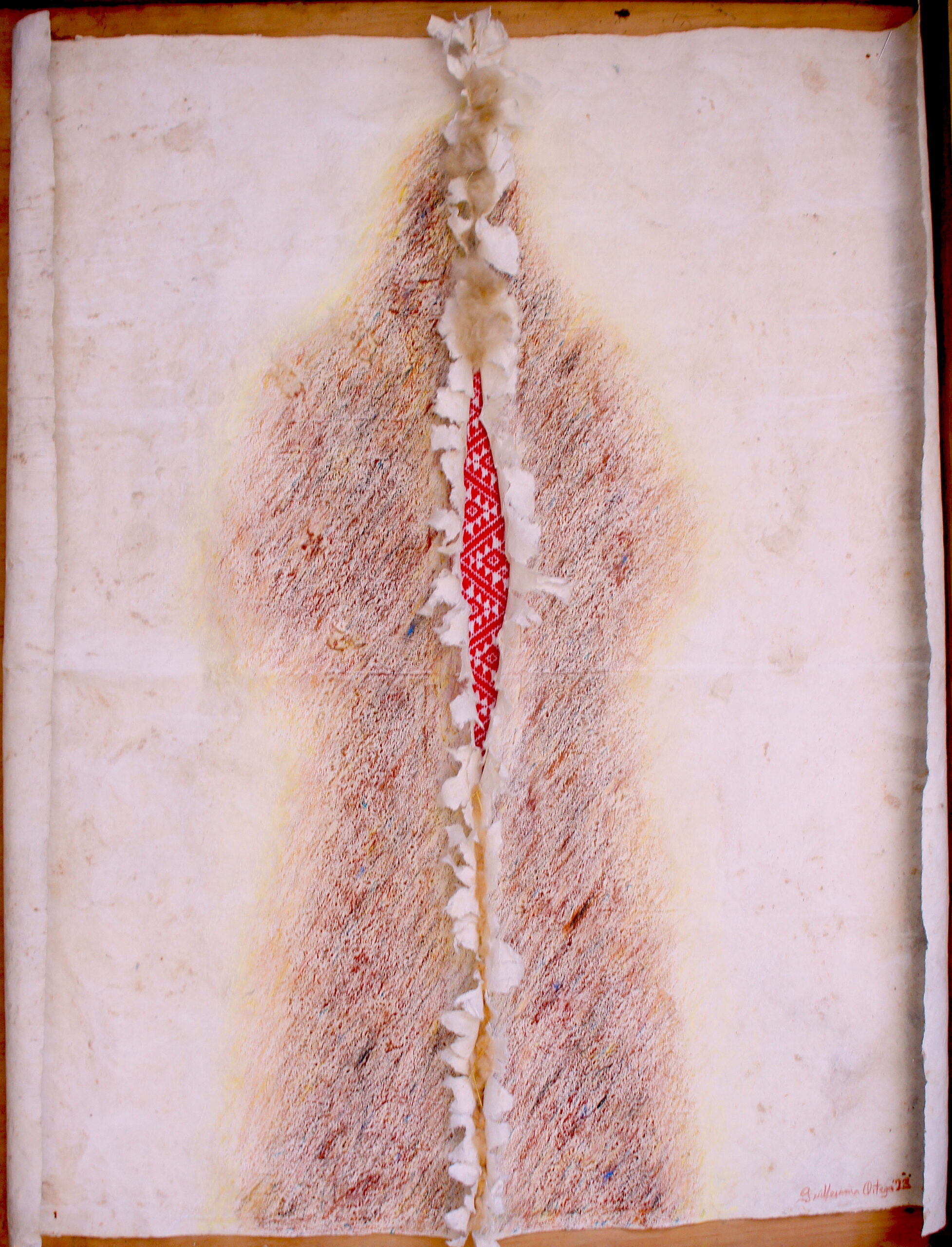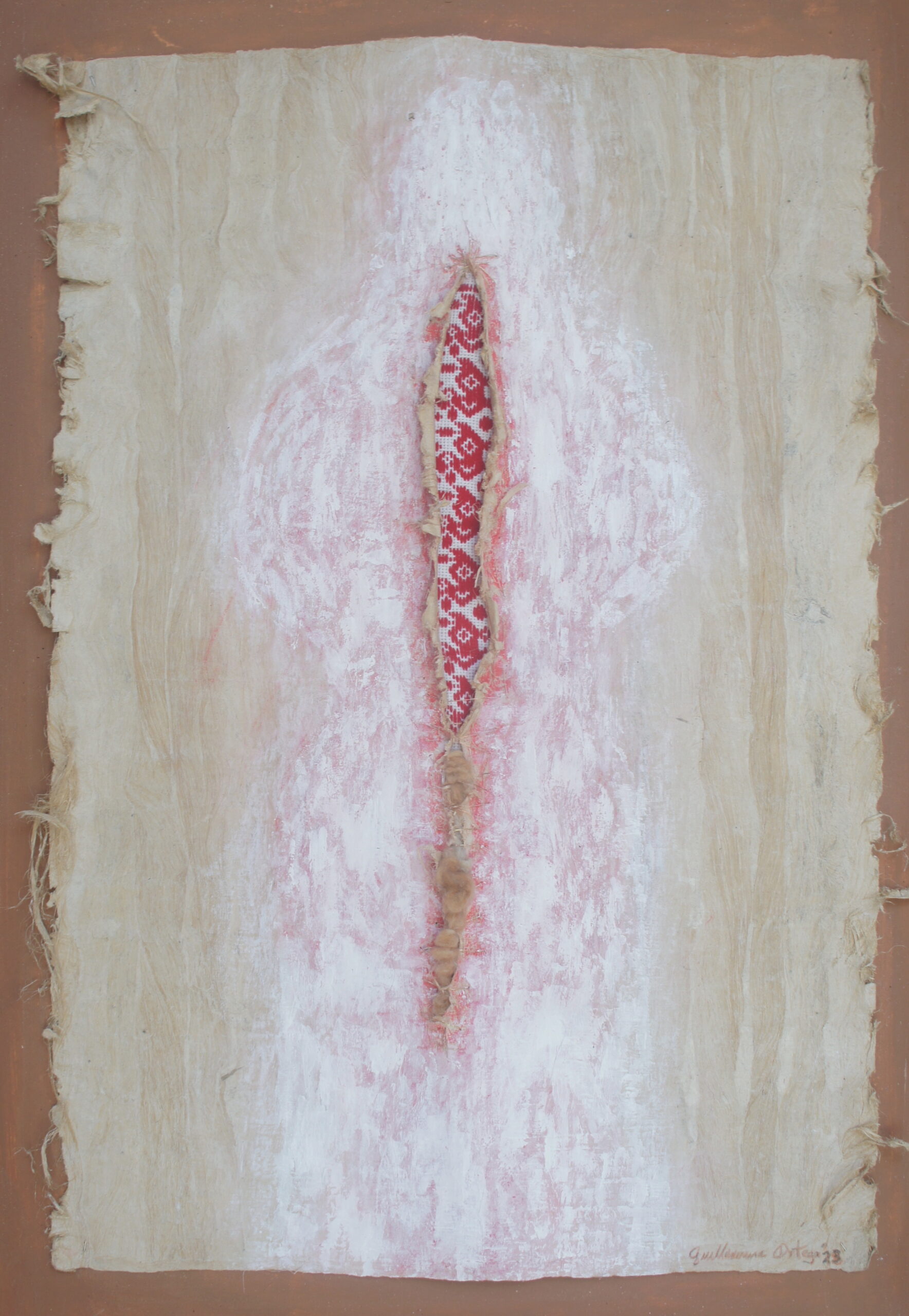 Desde la herida, las rasgaduras, las fracturas pero también la apertura y la posibilidad, Guillermina Ortega experimenta en cuerpo propio la sanación desde un cuerpo y un territorio que ha sido saqueado, excluido e invisibilizado. De la misma manera que materialidades como el barro o los textiles, los cuerpos racializados aparecen en su obra haciendo eco a la ancestralidad interrumpida por los procesos de colonización mostrando la fuerza de creación y transformación que tiene la sexualidad femenina y los saberes del cuerpo moreno.